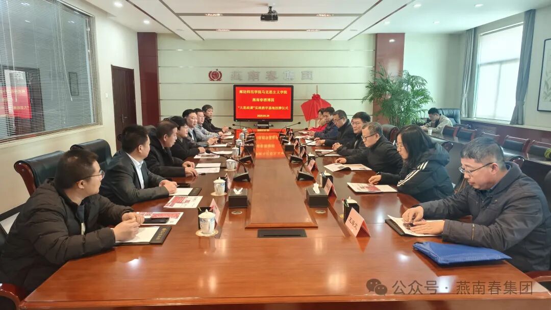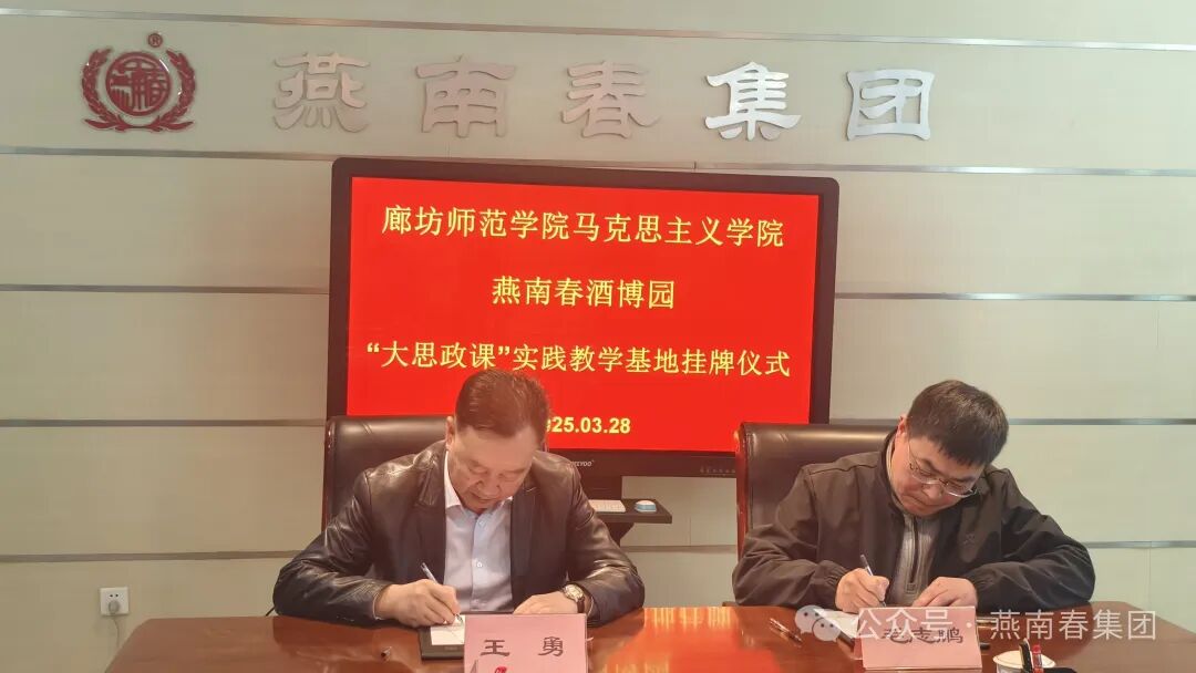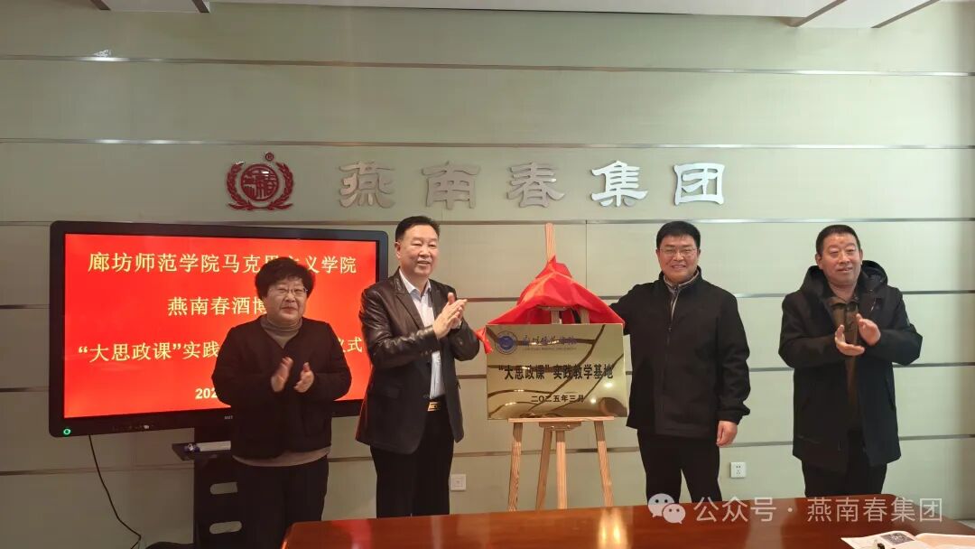 为深入贯彻落实习近平总书记关于 "大思政课" 建设的重要指示精神,创新思政教育实践模式,3月28日下午,廊坊师范学院马克思主义学院与燕南春正式举行挂牌仪式,共同打造燕南春 "大思政课" 实践教学基地。